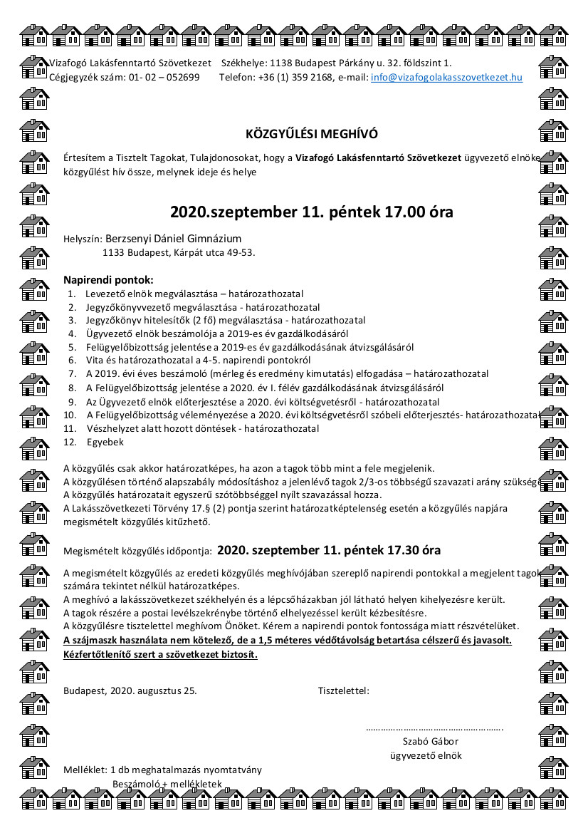 Mellékelve megtalálják a 2020. szeptember 11-ei közgyűlés anyagait. A mellékletek csak bejelentkezést követően érhetők el.